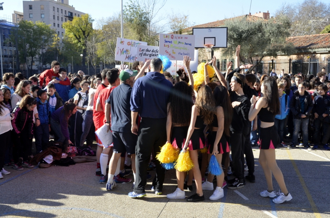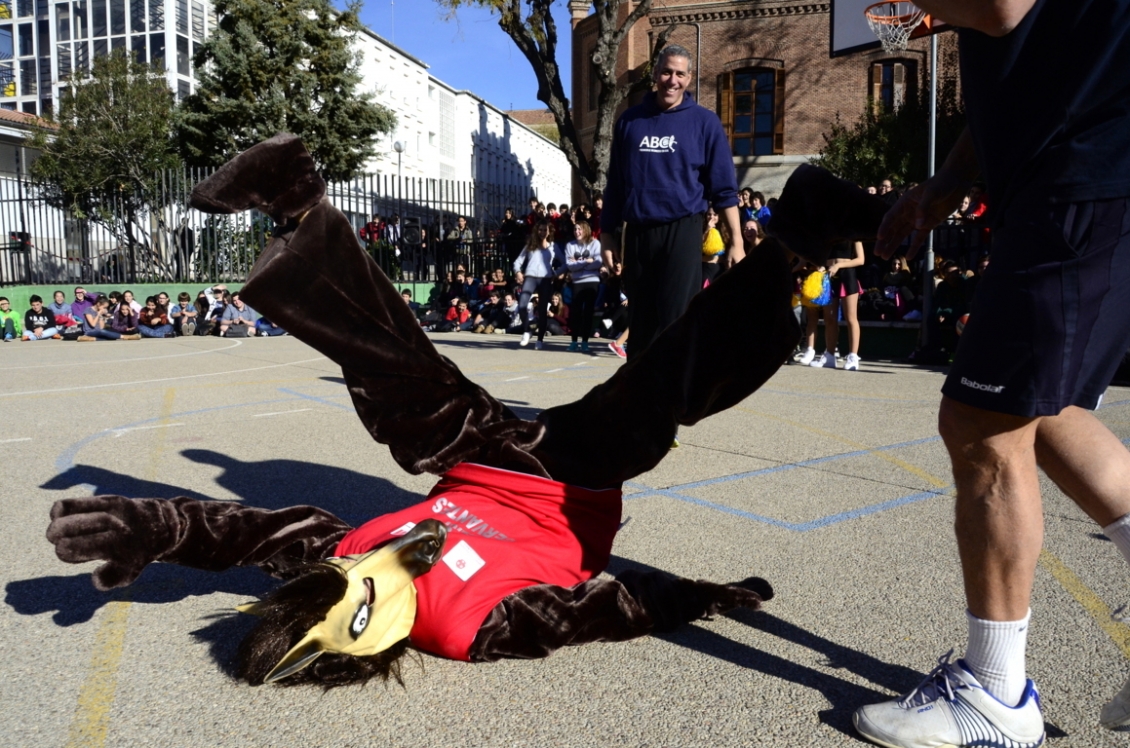 There was nothing better to finish that all the participants gathering on the court-turned-dance-floor to dance following the cheerleaders. Once the song was finished, an official photo was taken with the mascot; players; cheerleaders; standard-bearers; the school’s physical education staff; Jow Arlaukas; Alberto López Ribé, President of the School Basketball Foundation; Pablo Carabias, Director of Events at the organization; and Julia Pérez, the principal, who also seized the moment to offer a few words in support of her students. The captains of both teams – boys’ and girls’ –and the cheerleaders also took the microphone to share their message of pride and school spirit. As the finale, a prize was given to the designer’s of the school’s new mascot.